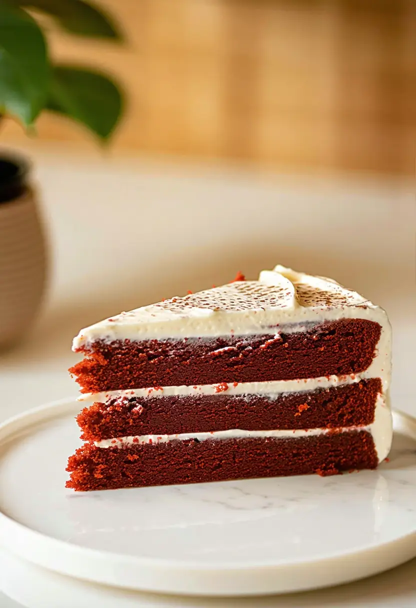 Rich and velvety, this red velvet cake is layered with creamy frosting for a luxurious treat that delights the senses.
